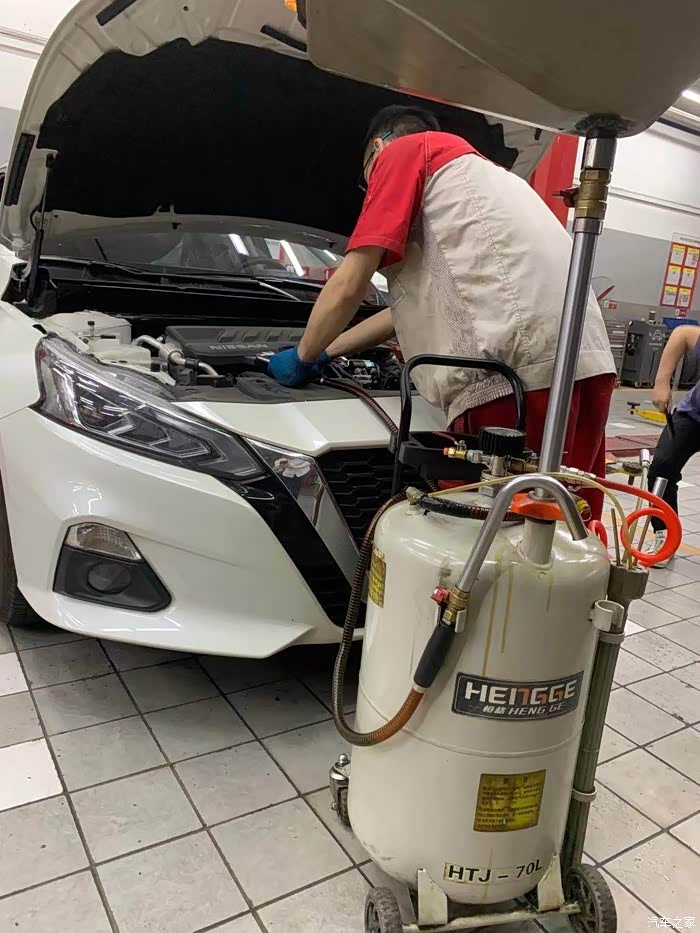 在临近下班时间点,不太好的就是麻烦师傅加班,不过好在整个保养也快,师傅也挺好的,以前都是在机舱下方流出来,这次是用仪器把废机油吸出来的,吸得很干净。