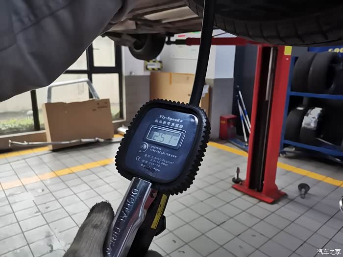 师傅说,胎压基本维持在2.5左右就可以了,高了就放点气,低了就加一点。