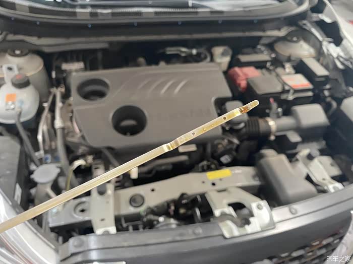 检查油液。油液的位置我们自己也可以看得,在两个圆圈的中间就可以,机油的话千万不要加多了,如果加多的话不光费油,动力性能也有所降低的。