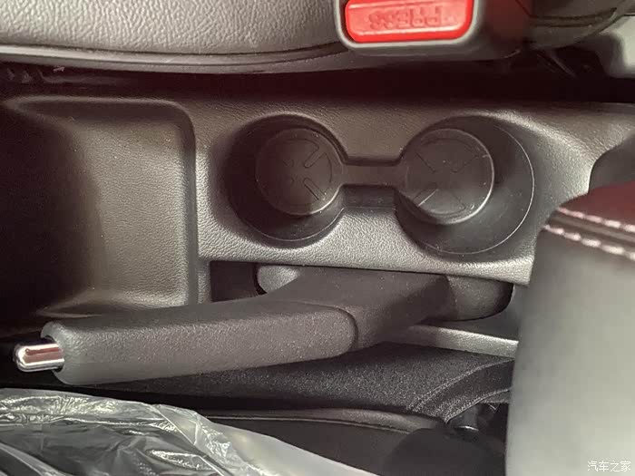 手刹的位置带有杯架,设计得非常棒。