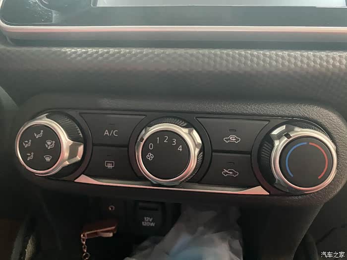 空调都是一些物理按键,操作简单方便。旋钮的质感也是很不错,拧出高级的感觉。