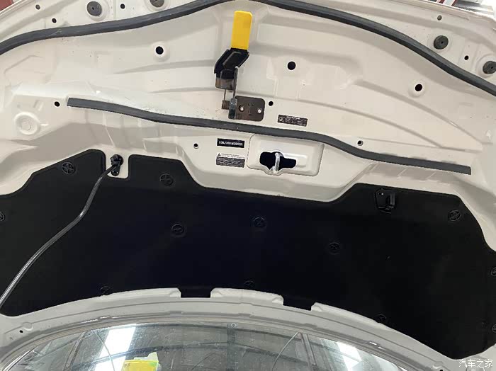 发动机舱盖看起来比较敦实。关键是隔音材料用的还真不少,所以静音效果才这么好。