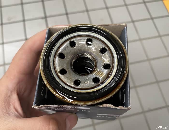 虽然是定期保养可以看出机油滤芯里的机油还是挺脏的,黑乎乎的。