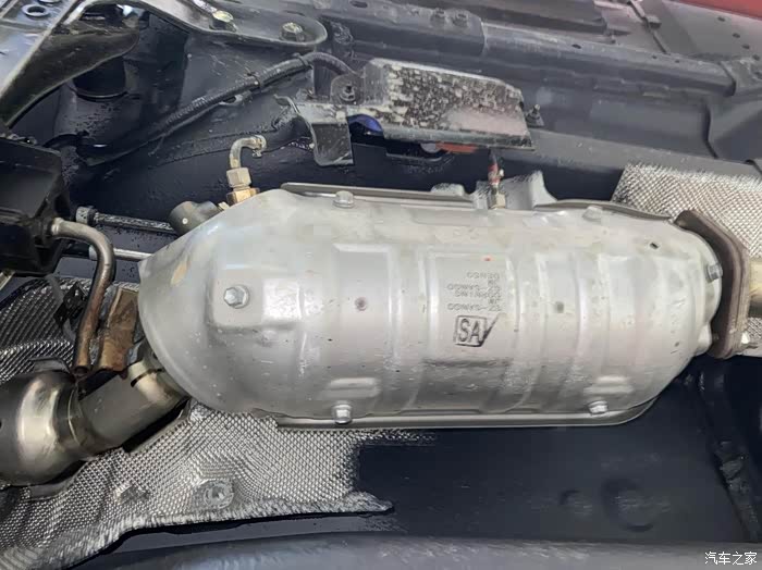 排气管上部的隔热板还是很扎实的。