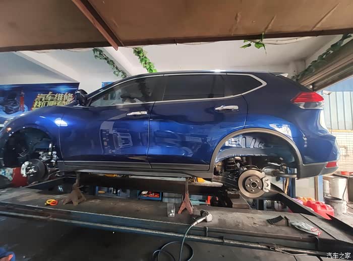 四个轮子都拆掉了,准备开干了。