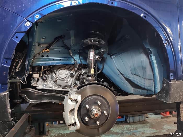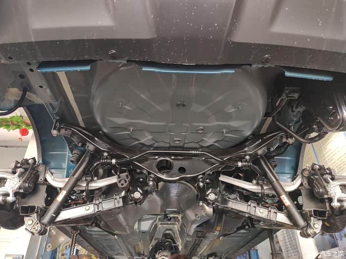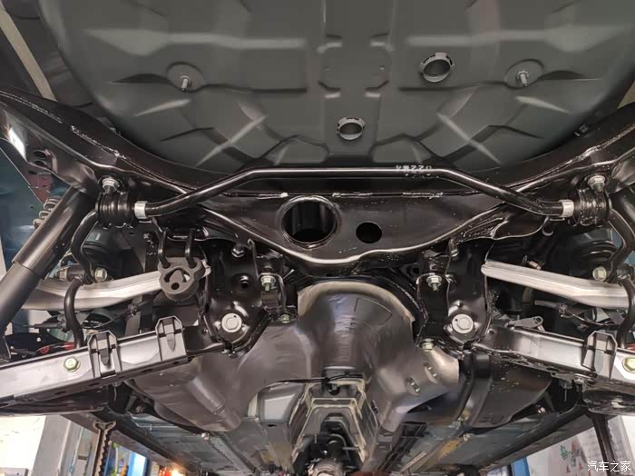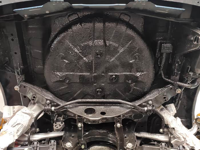 前悬架是麦弗逊独立悬架,悬架的拉杆这些也都非常的粗壮结实有力,防锈处理也看起来比较严密。