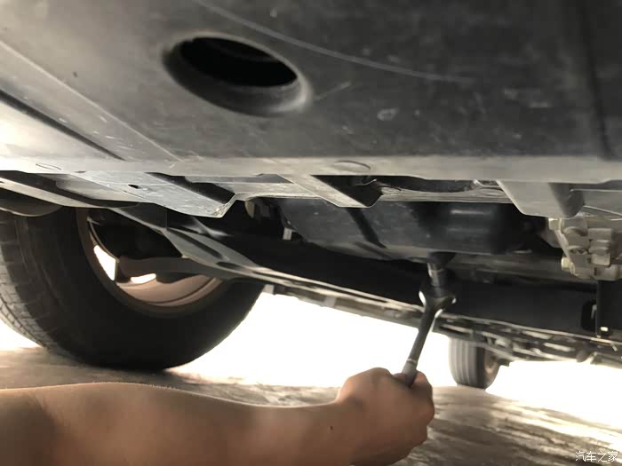 放油螺丝是14厘,用14厘套筒加套杆将放油螺丝拧开,套杆可以调顺时针和逆时针,拧开的话调逆时针,反之上紧调顺时针。