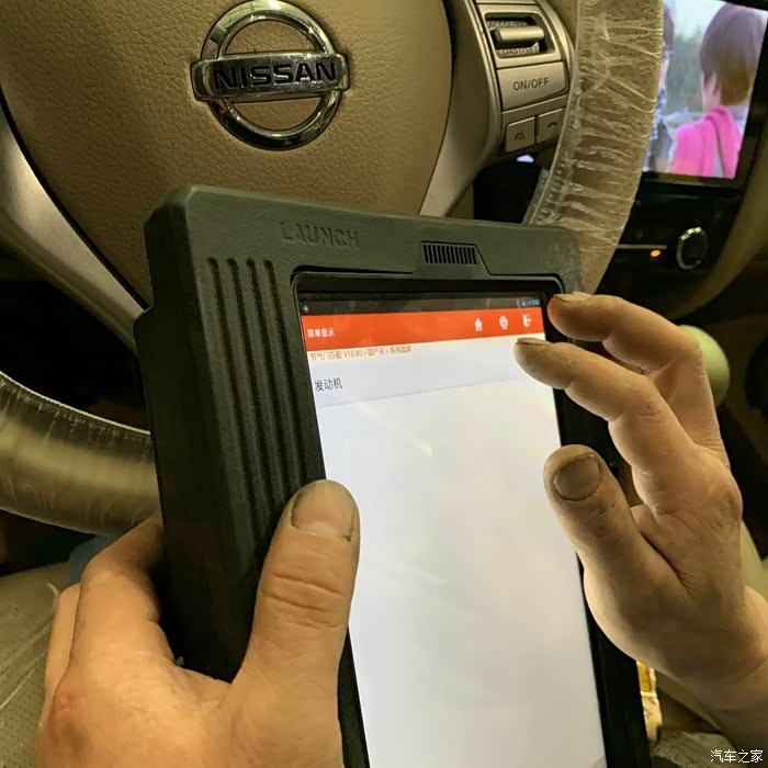 师傅把节气门清洗干净后,我也看了一下,确实很干净。然后,师傅开始安装,这也比较容易。节气门安装之后,我看师傅拿来一个小电脑,把一个插头连接到车上,说是要对节气门进行匹配,要是不匹配,发动机的怠速就会忽高忽低。我只是在师傅刚连接电脑时拍了一张,可能这个节气门的匹配真如车友说的比较难,师傅匹配了好几次才匹配成功。