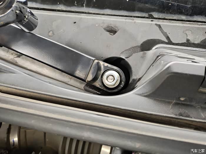 第11步,这时需准备好按14的棘轮扳手或者套筒,准备对雨刮臂固定螺栓进行拆卸。