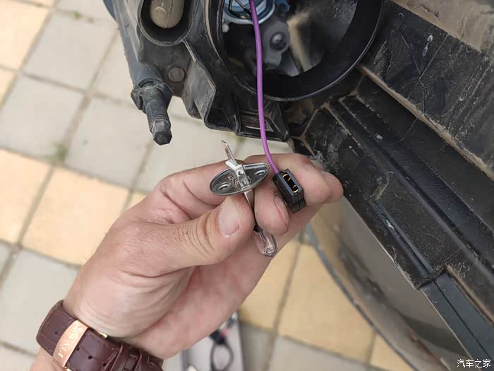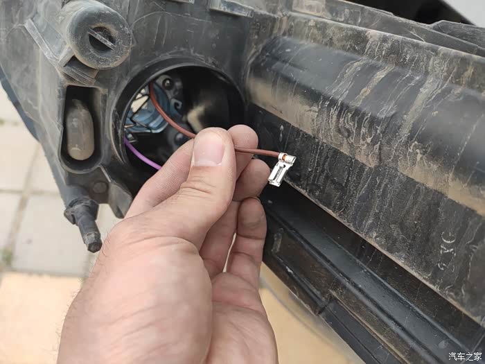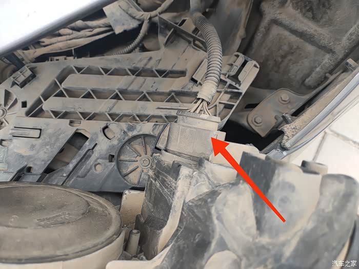 要看这里有一根线束,这个线束就是大灯里的各种灯的线束,可以拔掉也可以不拔掉
