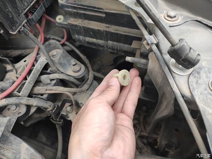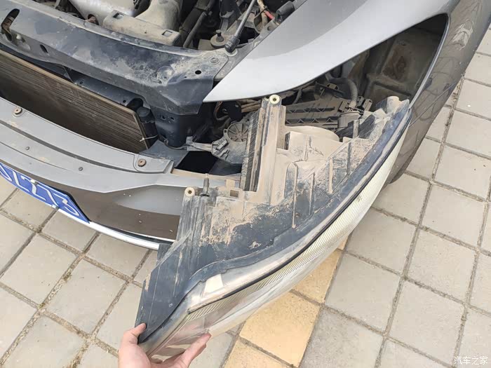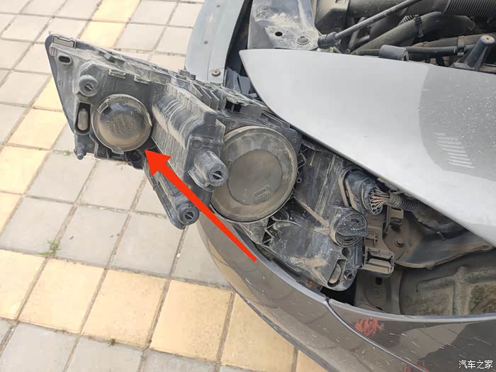 这里有一个压住大灯的卡子,看到这个卡子的豁口就知道怎么弹开这个卡子了