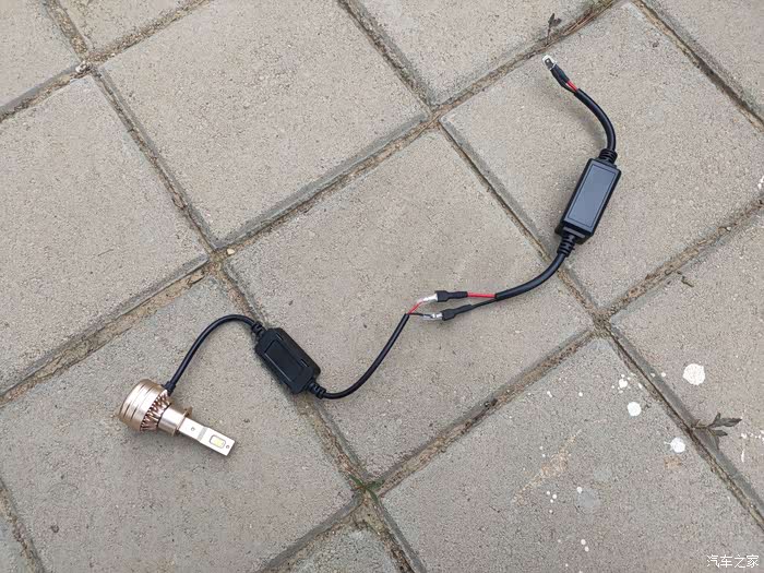 而我们刚才拔掉的原车灯灯座就是正极,之前我们接好的LED灯和解码器已经接好了,解码器的另外一头在和灯座接上就行了,红色接灯座也就是正极,黑色接灰色也就是负极