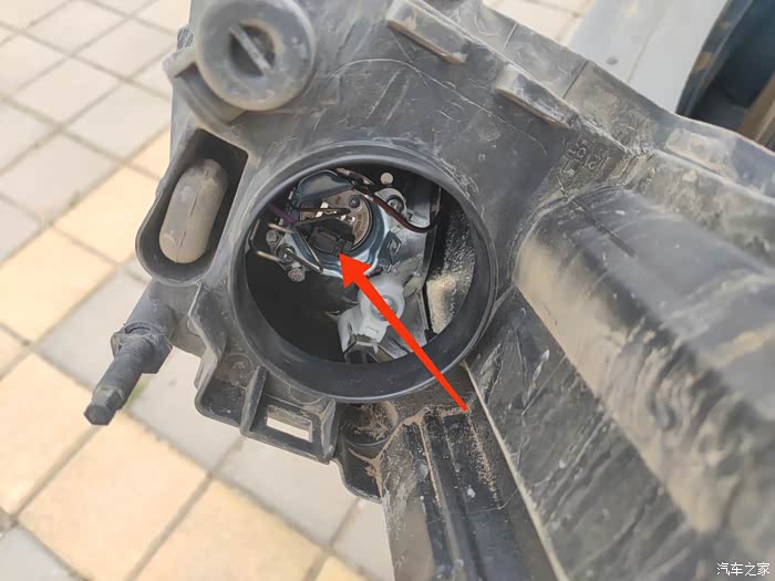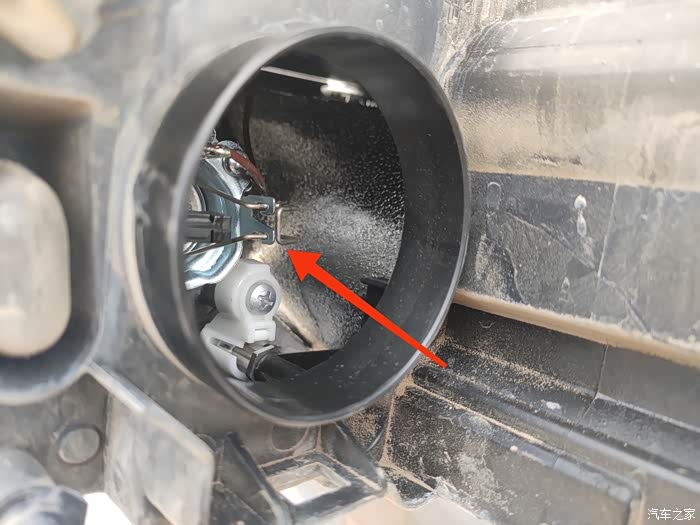 卡子拿掉以后看到的就是松动的黑色大灯灯座
