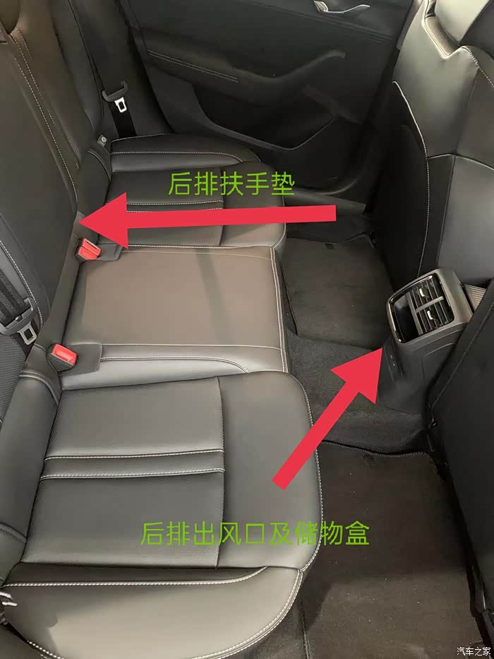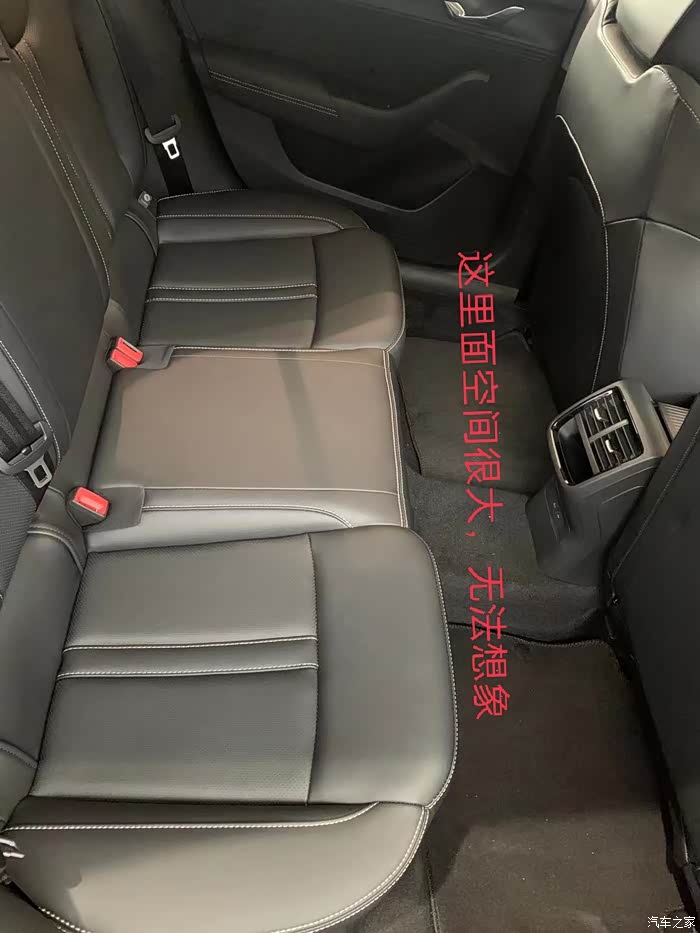 再往后排坐,这空间,杠杠滴,我都是以葛优躺的方式坐进去的,176cm的我,似乎有点矮,后面LED阅读灯,通风口,数据线充电等还有个后排手靠垫,更增加了稳感,家用再合适不过。