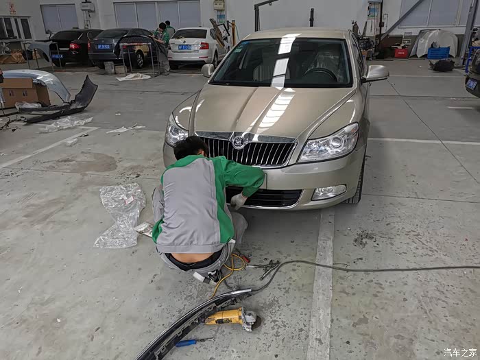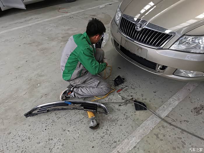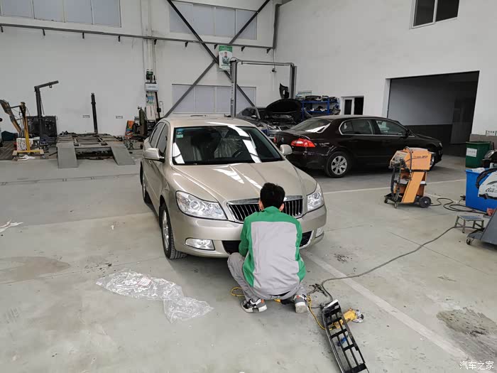 检查完以后,接待直接把车子开进了维修车间,小伙子上来咔咔就准备往外拉下格栅了。