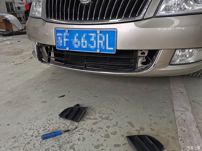 先拿掉格栅左右两侧的装饰板,然后用大力钳拔防盗螺丝盖。