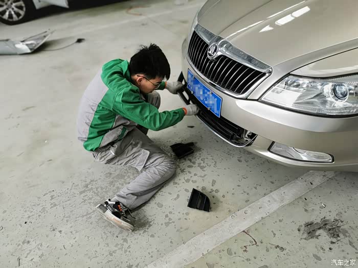 三下五除二,安装上新的下格栅,再安装好牌照