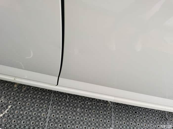 这个门上的凹痕较小,拍照看不大出来,师傅要修复这里。