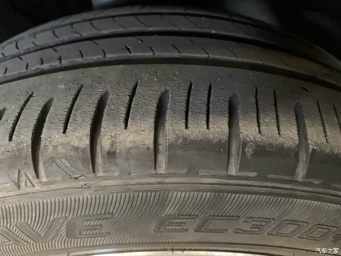 行驶8.8万公里的轮胎磨损严重,橡胶老化特别硬并且全是裂纹!