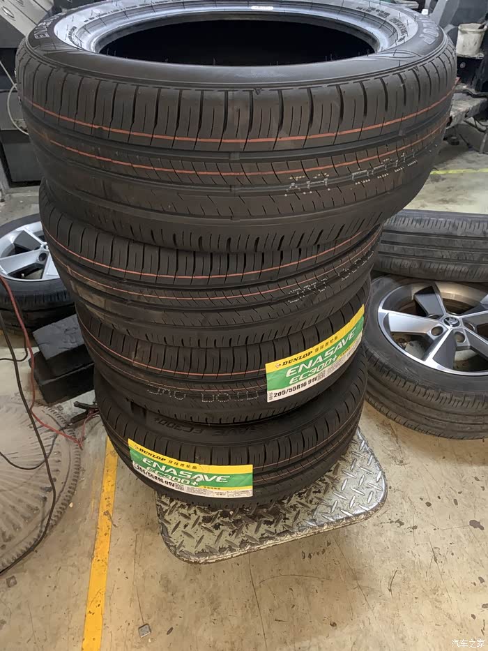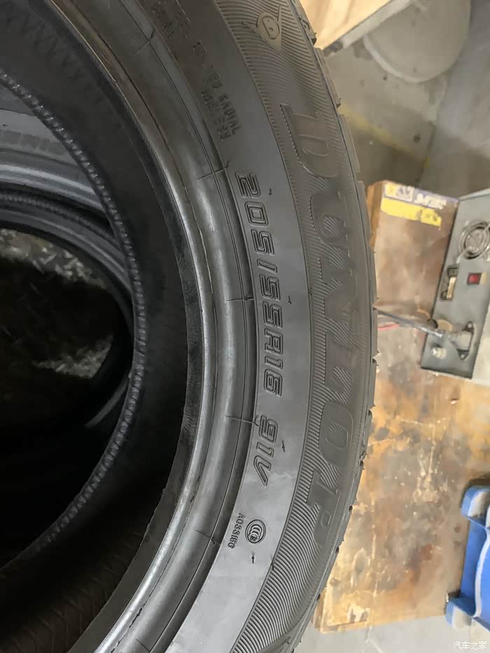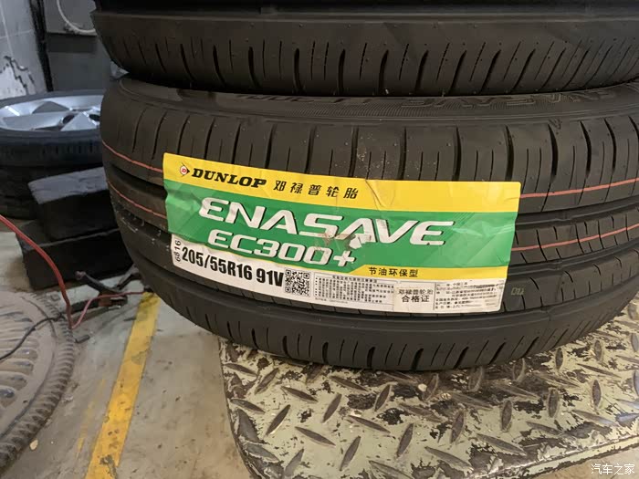 原车轮胎是邓禄普EC300+的, 型号是205/55R 16、原车轮胎还是不错的,兼顾着静音舒适性,燃油经济性,所以这次还是选择它,值得信赖!