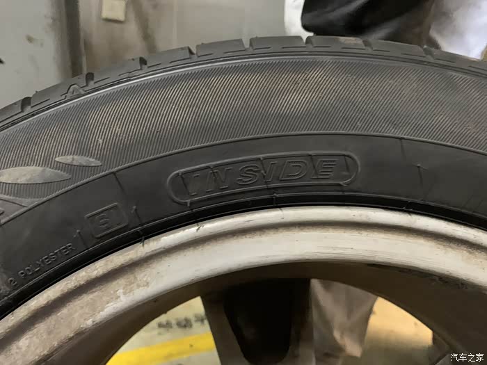 轮胎分内外侧,轮胎侧面有INSIDE 表示为内侧。