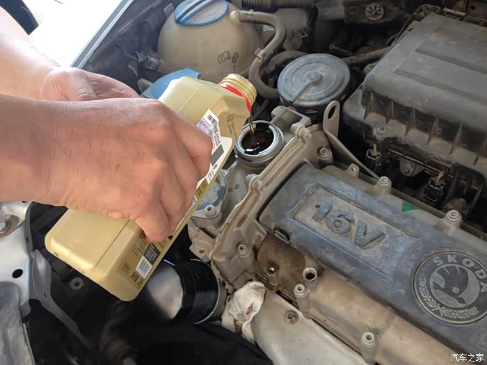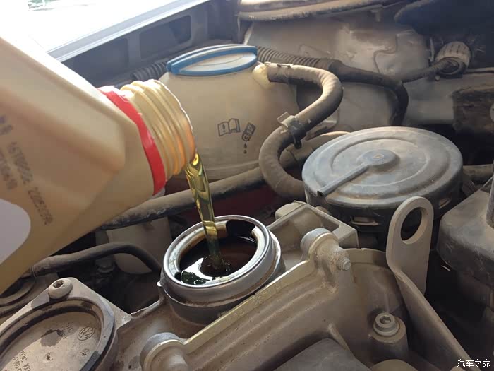 加购买的原厂机油,加油一定要慢,防止机油滴在外面。