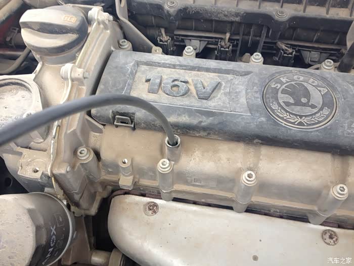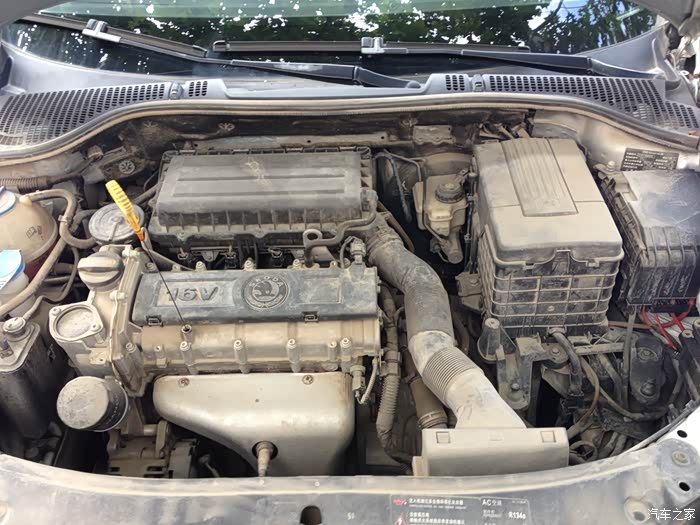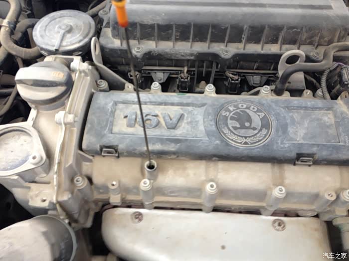 接下来就分享一下更换机油机滤的过程,打开发动机舱查看机油尺,机油基本上没有消耗,就是机油非常黑。