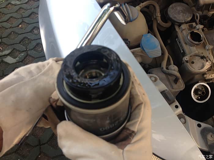 内部的构造非常的好,接下来在新机滤上摸了一些机油。