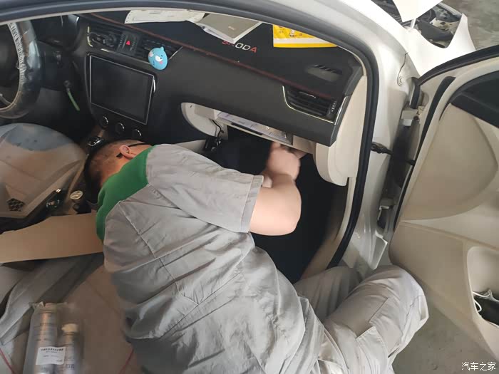 拆除手套箱,准备更换空调滤芯并准备清洗空调。