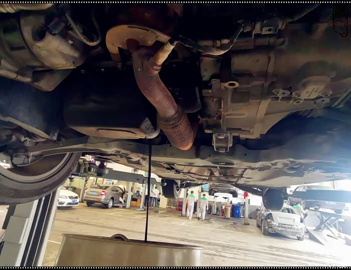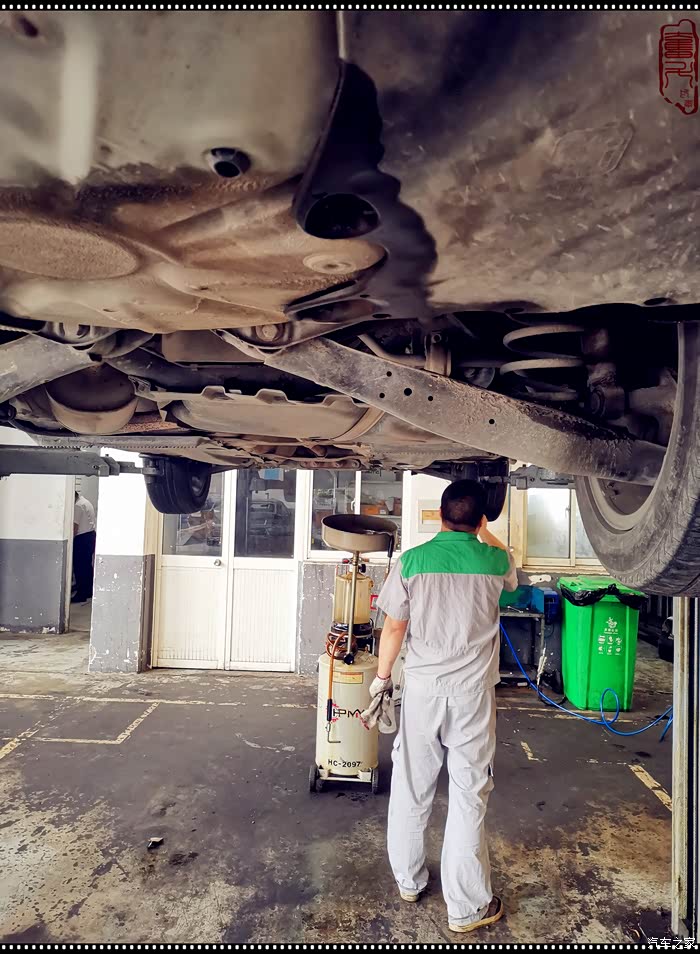 趁着放油的时间,师傅检查底盘及轮胎