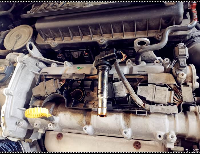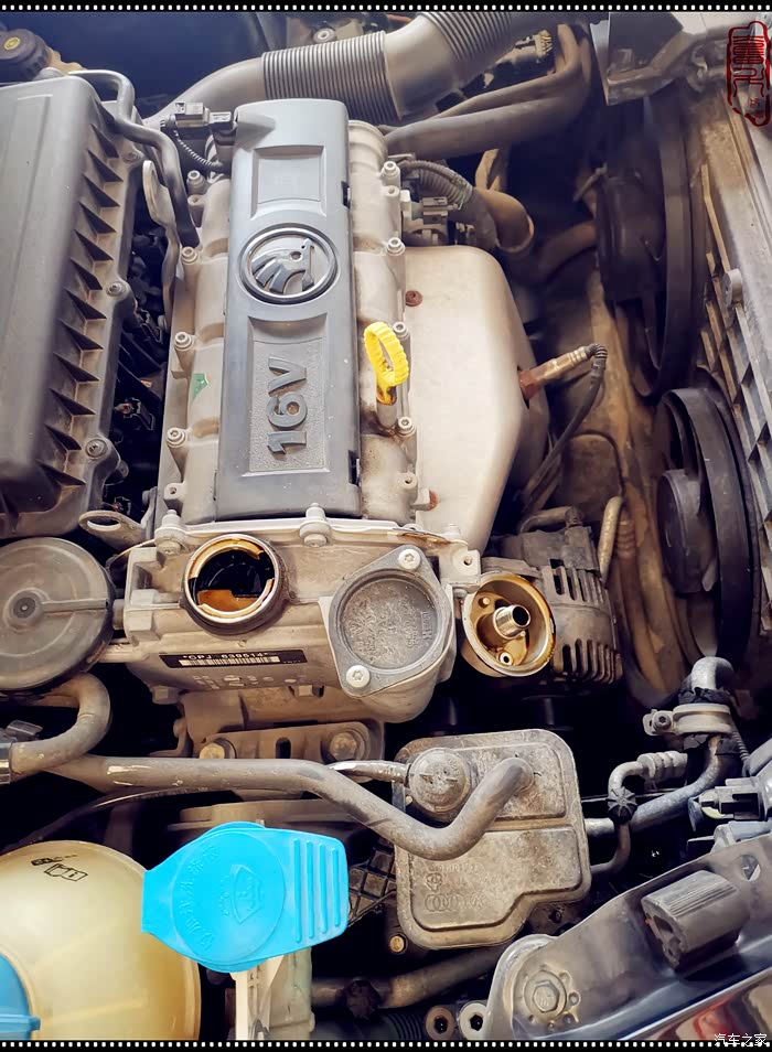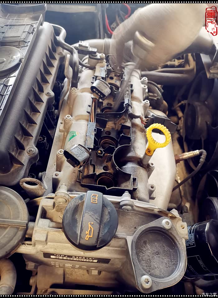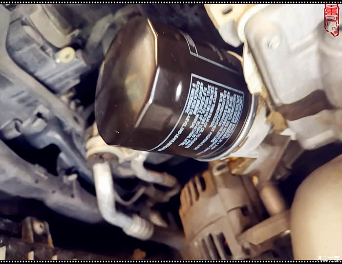 拆掉旧的机油滤芯,打开机油盖