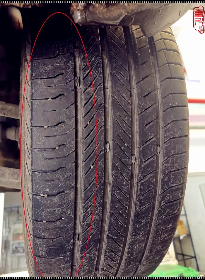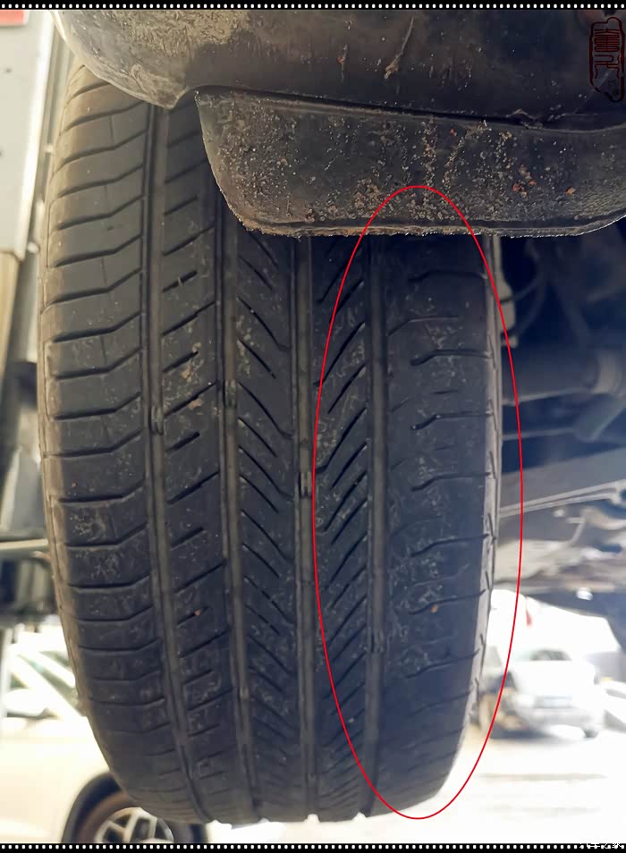发现前轮两条轮胎有吃胎现象,师傅说不是4轮定位的问题,是轮胎本身问题(后轮OK),师傅说便宜无好货,网上买的轮胎便宜,但是一分钱一分货……