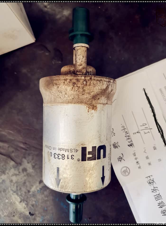 燃油滤清器好久没有换过了,一般正常是3W里程左右更换一次,已经换下来的旧的燃油滤清器