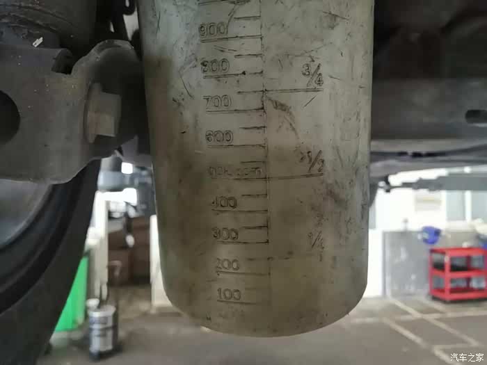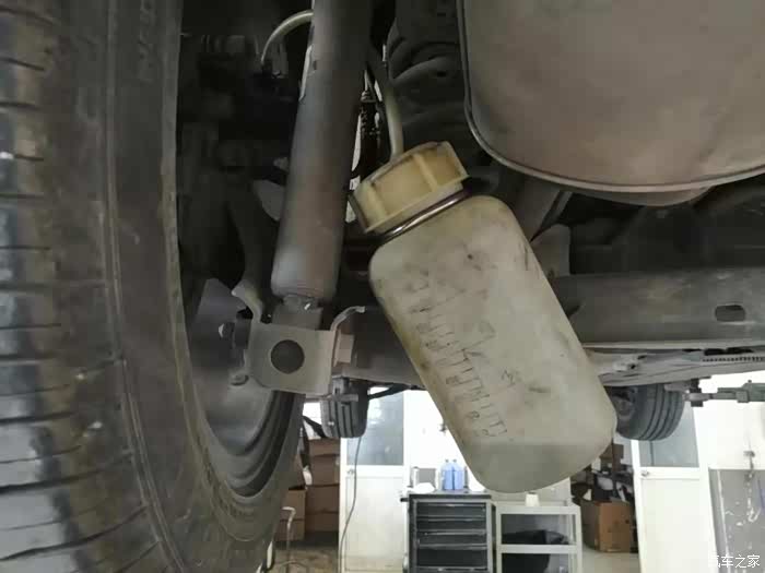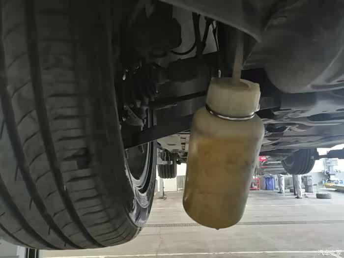 全部完成后,废油回收壶已经装满旧刹车油。