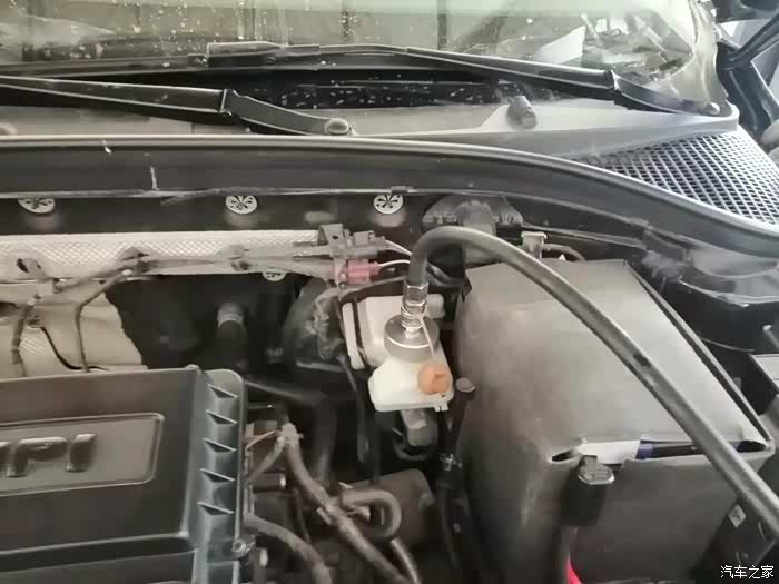 然后,取下油壶及刹车油注入管。降下车辆后,启动发动机,在移动车辆前预踩几下刹车踏板,以防刹车失效。