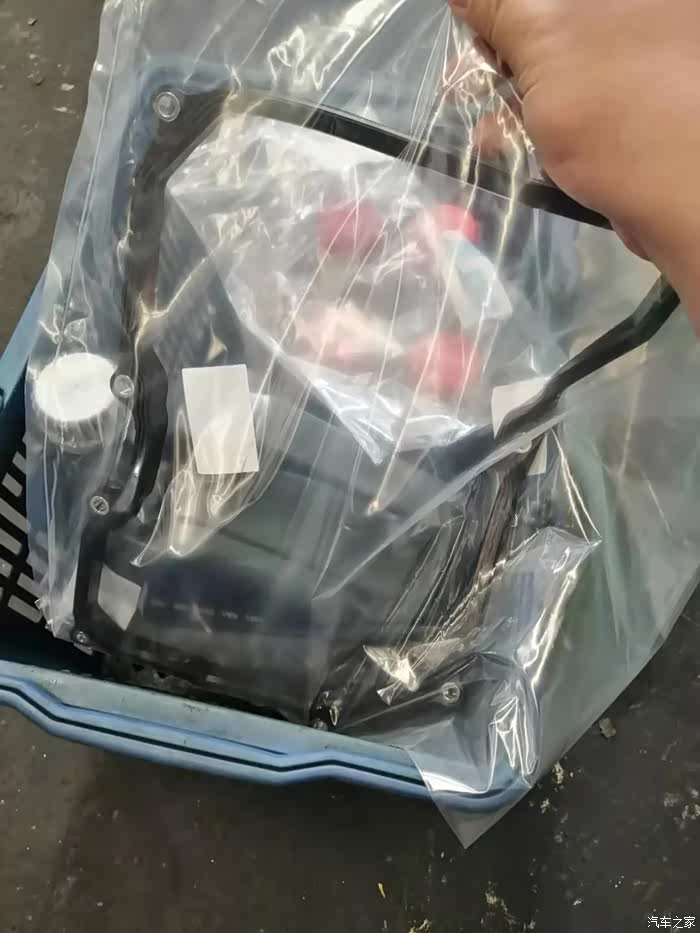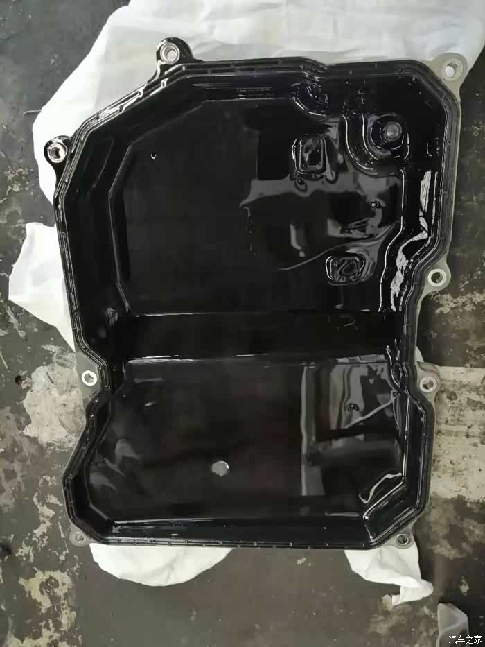 拆下的油底壳。师傅用清洗剂清洗后用抹布搽干净。