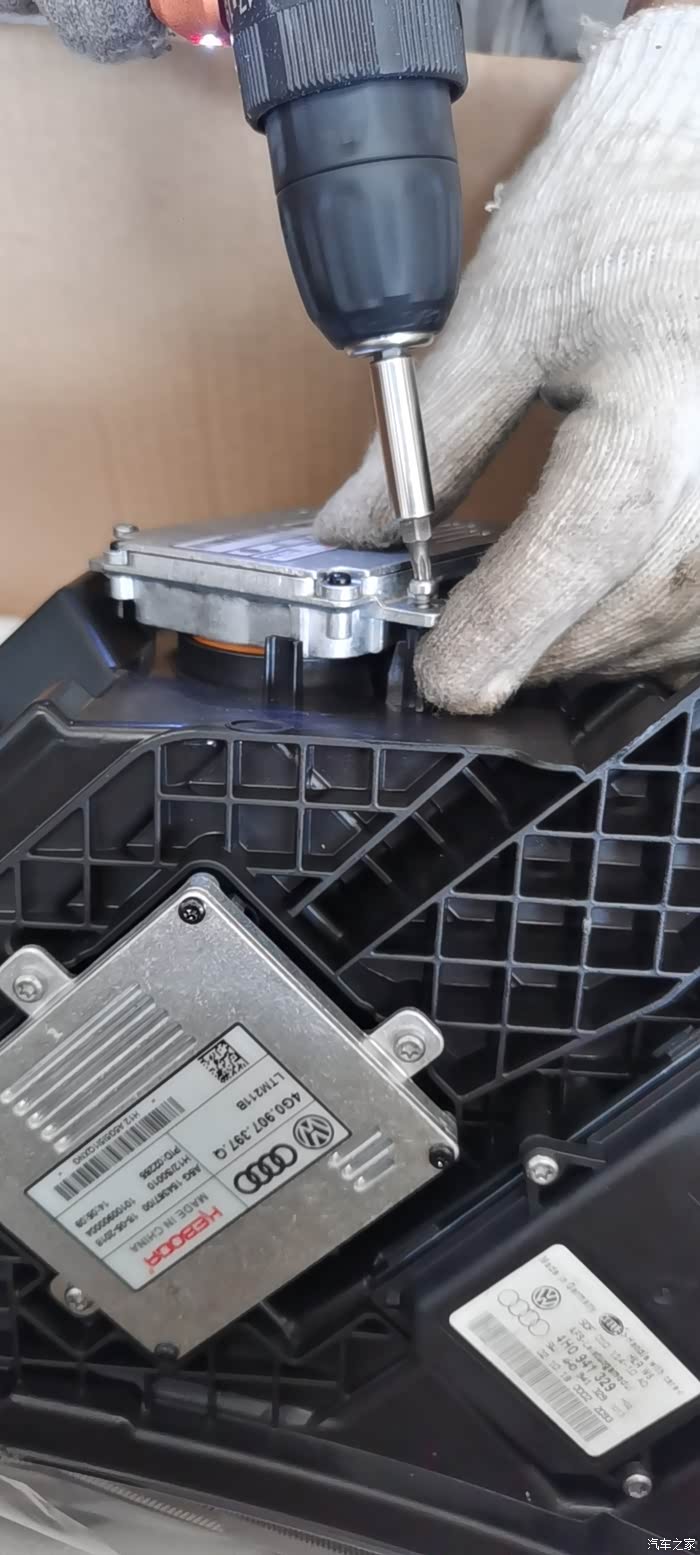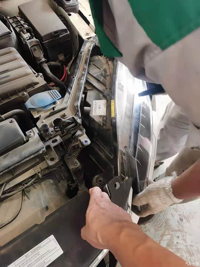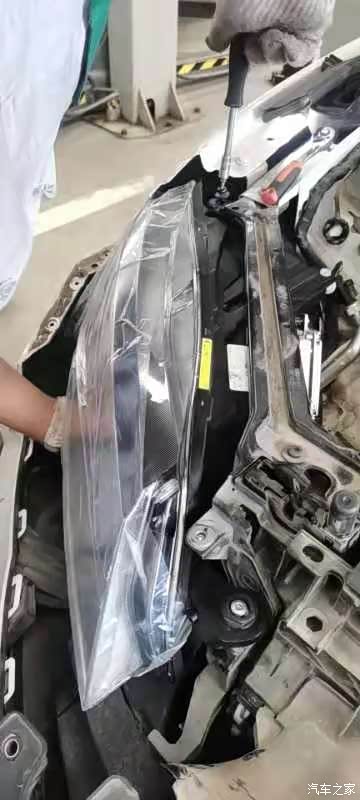 1、首先要将旧大灯拆除:先拆掉上部固定前保险杠的几个螺丝钉,也可以将保险杠拆下方便操作,但是我的带有大灯清洗以及前雷达,保险杠拆下来也很麻烦,就没有拆。然后将固定大灯的一圈螺丝钉拆下来,前轮轮眉上也有两个螺丝,