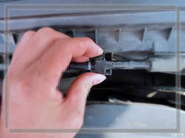 这个线束,用手指捏住,用点力就可以把这个卡扣打开,把线拿出来就可以了。记得装回去,把它要复位,上面有标记位。