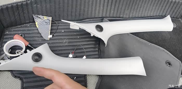 改装的高音在原位上开孔固定。DSP本来想用歌乐的,但是最终选择了8音度的最新款DSP,更细节一点(高端玩家请略过)。中音喇叭因为有事儿没在现场,所以没拍到,基本上就是在原位切割,重新做一个喇叭圈,不然原厂是椭圆型的,没法安装,既然不能无损安装,就得自己做了。换好之后试音效果杠杠的,