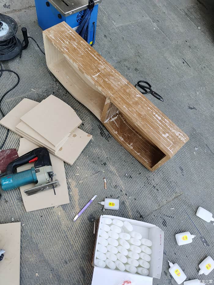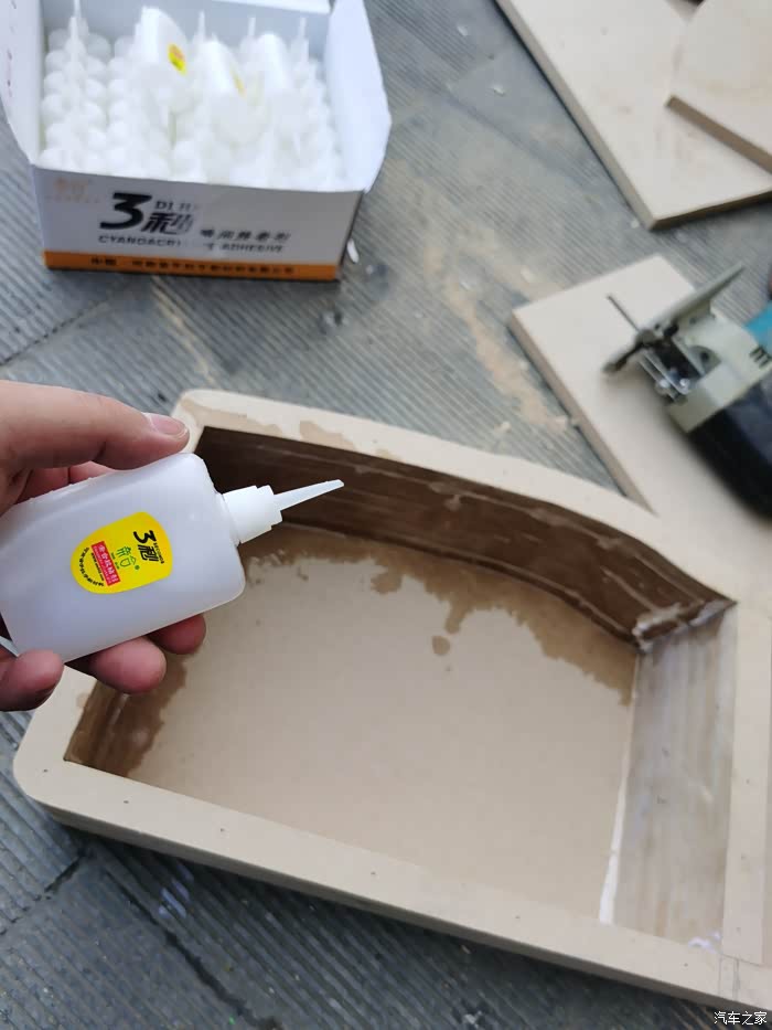 完美切合后备箱容积。到这儿就开始高兴了。殊不知,箱体不是这么堆起来就行了,恐怖的是加胶,我买了整整一大盒502