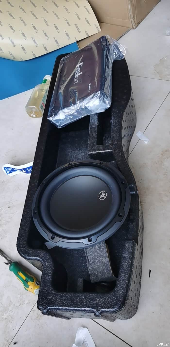 ,问了之后才知道,没有灵魂(心中一万只......),恶补之后才明白,少个炮,什么是炮,超低音炮,装了炮还得有功放推,不然装了也白装,有小伙伴推荐用那种放在座椅下面的扁炮,试过效果之后,决定要箱炮,效果没法比啊啊啊啊,听过之后回不去了,选了捷力的8寸超低音跟芬朗的800.1功放,够了。可是小蚂蚁没地方放啊,这是超级难题,最终敲定,放在后备箱,无源炮,箱体得做啊,不结实受不住能量,有结实的用不了。纠结了一天,做!自己做箱体,痛苦的三天,拿着小蚂蚁后备箱的泡沫,全城找可以建模切割的地方。