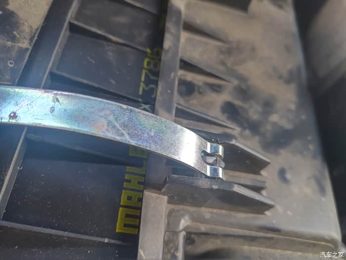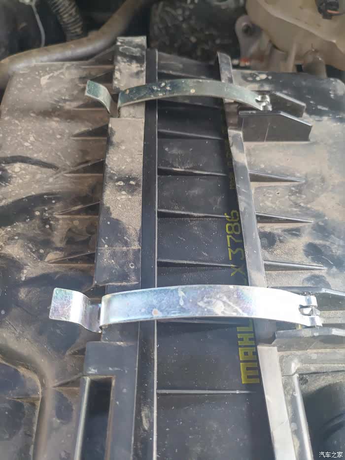 下面开始换空气滤芯,这个就很简单了,只要你看过师傅整一次,你就记住了。就是那有连个铁卡子的部位就是空气滤芯的部位