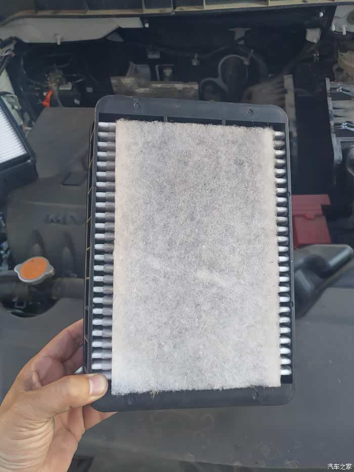 这是旧的,之前在保养的时候师傅给用风枪给吹了吹,说下次该换了,这不咱自己就给爱车更换滤芯了。