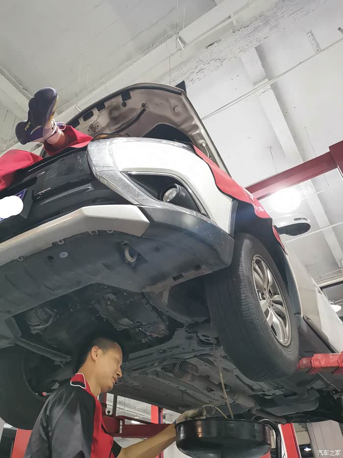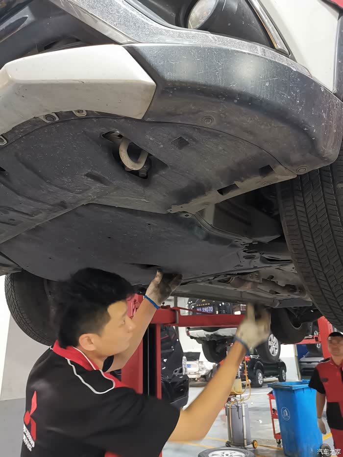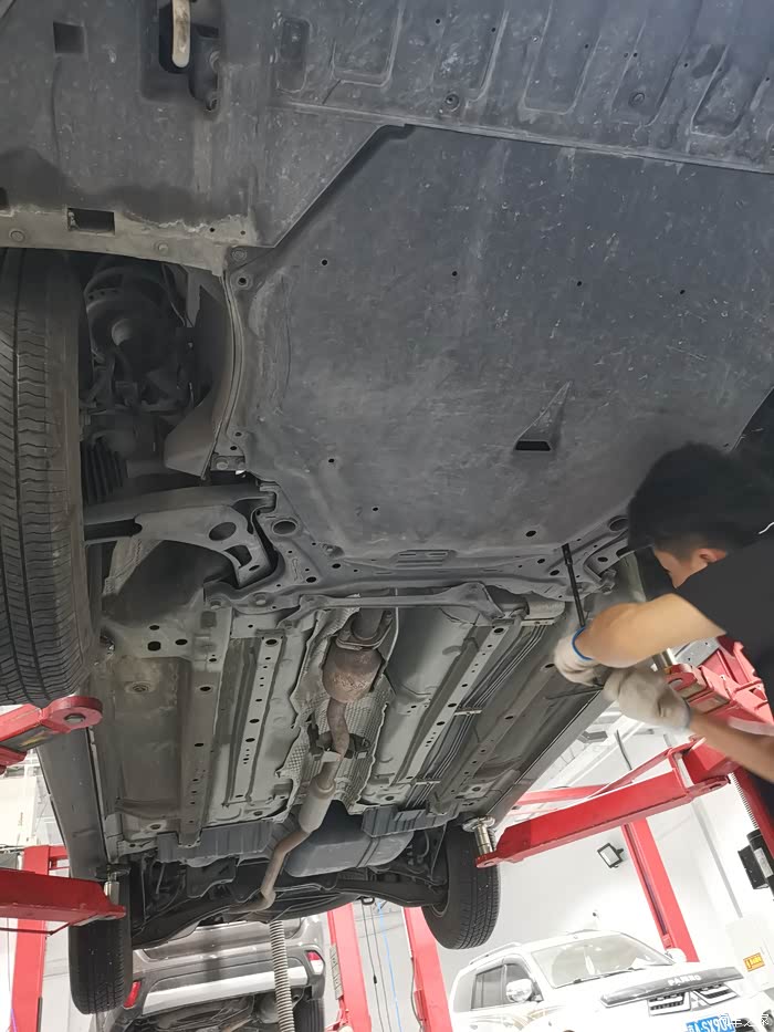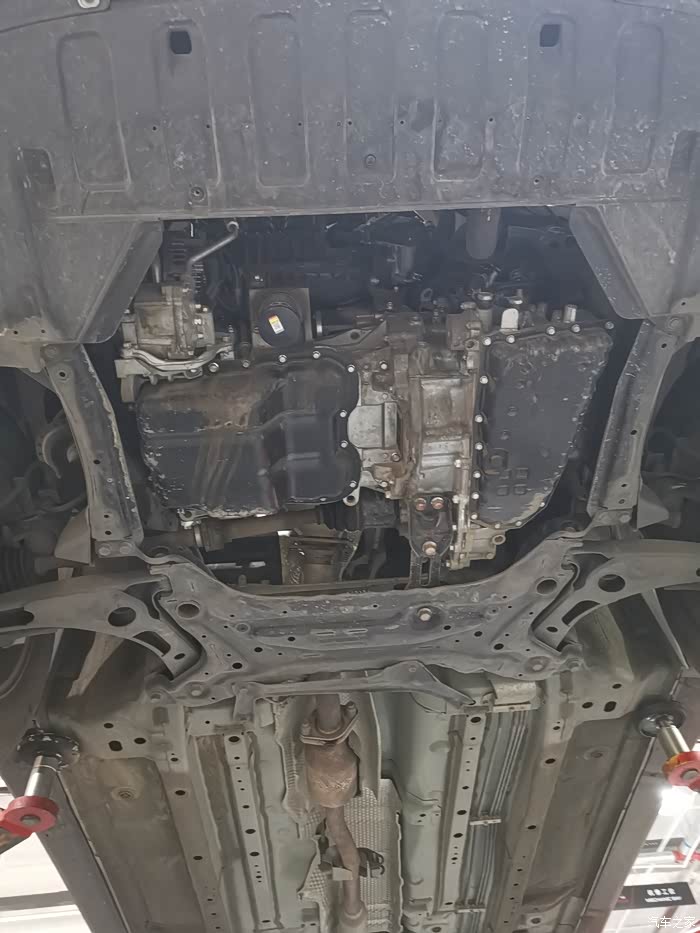 趁着技师拆护板,我也看看车底,8w多公里基本没发生也没听到刮底盘的声音,21.5cm的离地间隙不是白给的!