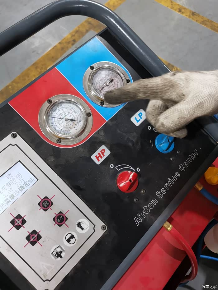 要每个轮胎都把以前的老油放掉,所以就需要一个人在车里踩刹车,一个人在底下四个轮子挨个放,还得有一个人在上边一点一点往里加