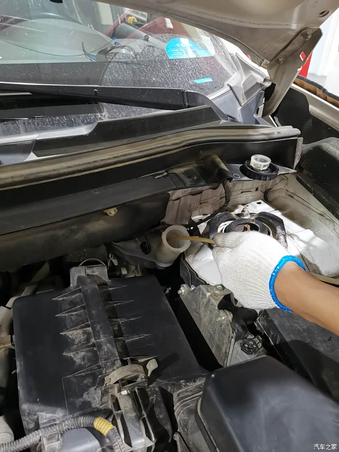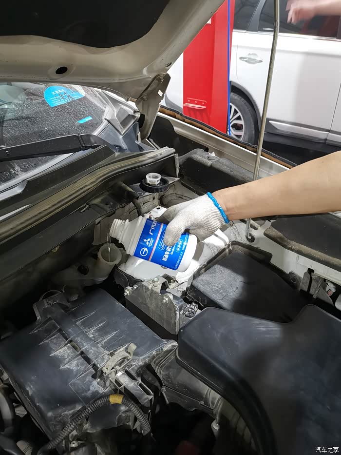 加第三个油——刹车油,这个是春节前到北四环保养时,厂家菱悦会做活动送的,送了4瓶!这次用两瓶,等家里那台奕歌到期时再加两瓶