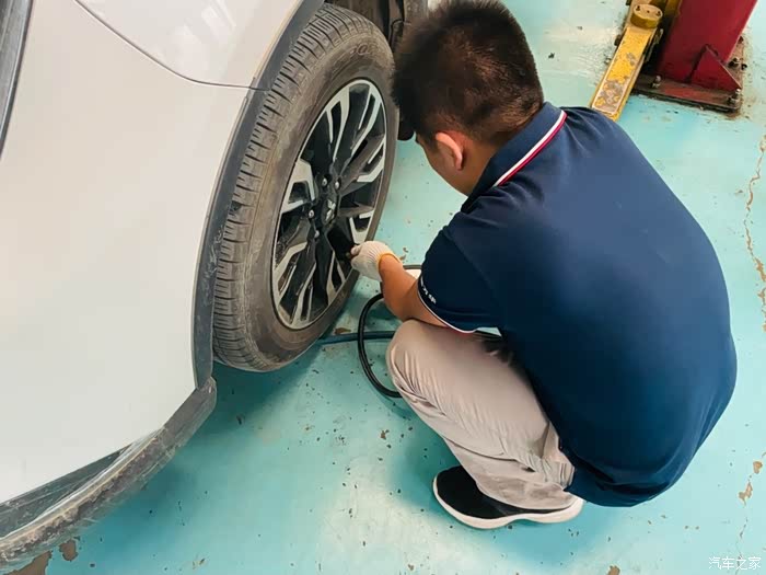 保养结束,检查一下胎压,有一个轮子胎压有点低。