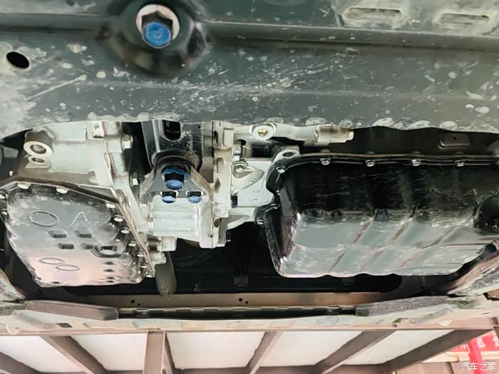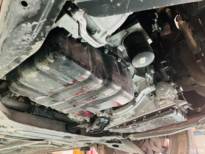 拆去发动机护板,二万多公里的发动机清新依旧,非常亮丽啊。