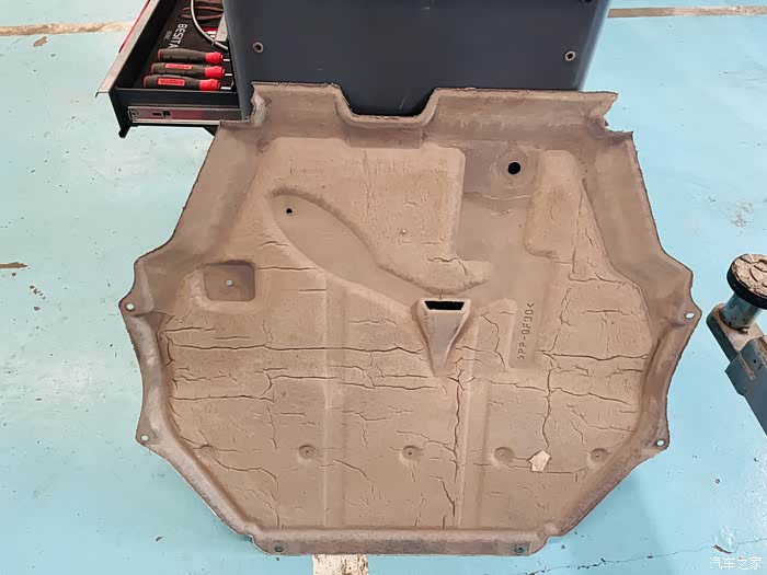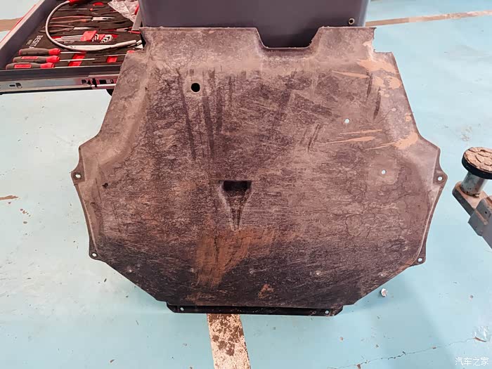 原车所带树脂护板已经损坏,不能正常使用。其实,原车的护板挺好的,质量很轻,比合金的轻多了。