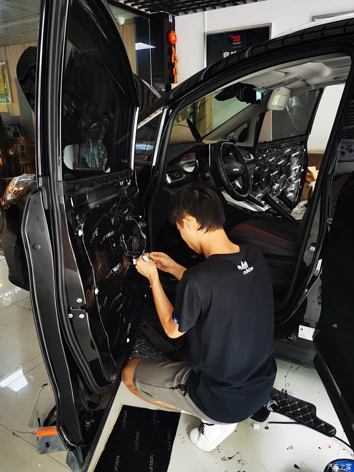 说起来都是泪,本来说好的到那里只是做个隔音的,到地方他的徒弟开始做隔音了,让我在休息室休息,在那里等,老板那没谁了,连杯茶都不倒给我喝喝,也就算了,这么热的天休息室连个空调都不给开,风扇也拿到外边用了,坐那里难受阿,老板进来就开始给我忽悠,让我换个喇叭吧